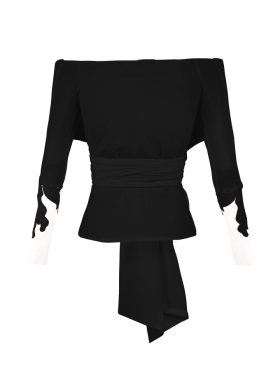 Bluza neagra cu decolteu pe umeri si maneci cu broderie Rimini