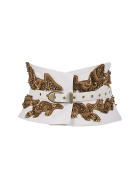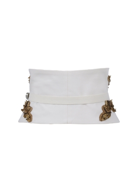 Brau textil alb din lana cu broderii si curea subtire ajustabila Louvre