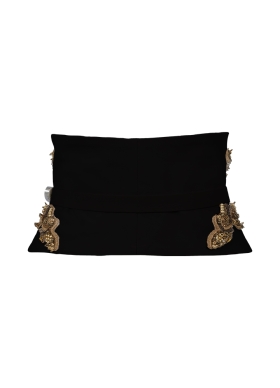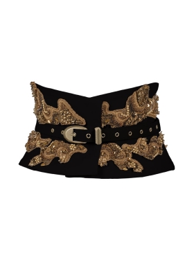 Brau textil negru din lana cu broderii si curea subtire ajustabila Louvre