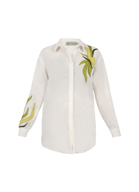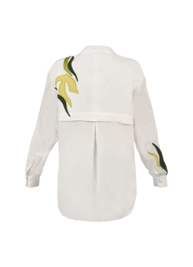 Camasa alba din in si vascoza cu broderii Peru