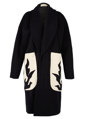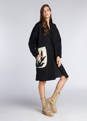 Cardigan midi din bumbac negru cu buzunare broderie Almeria