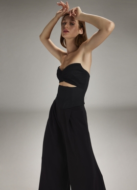 Corset negru din lana si tulle de matase cu decupaj si decolteu in V Flair
