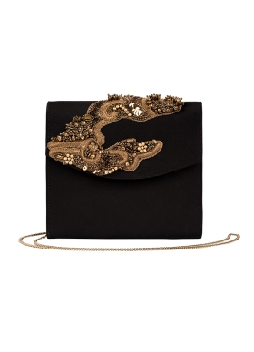 Geanta neagra din satin cu broderie si lant metalic Morocco