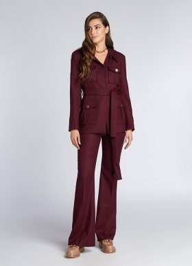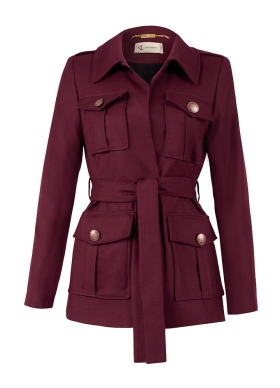 Jacheta functionala din lana visinie cu cordon in talie Sigma