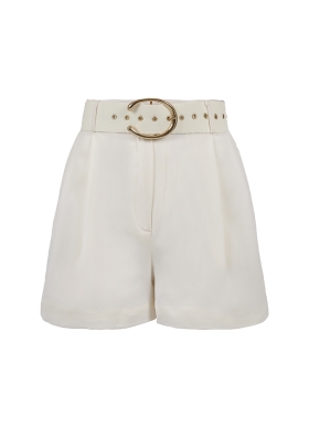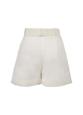 Pantaloni scurti albi din lana cu talie inalta Enigma