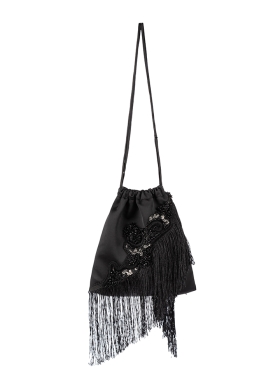 Poseta de seara tip saculet cu broderii si franjuri Orsay