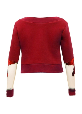 Pulover scurt rosu din bumbac cu detalii din tulle si broderie Canvas