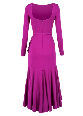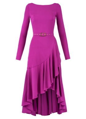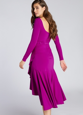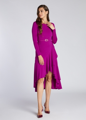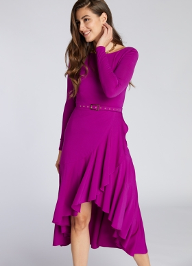 Rochie asimetrica mov cu volane cu spate decoltat si curea asortata Mimosa