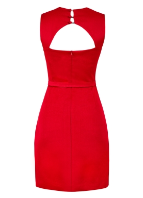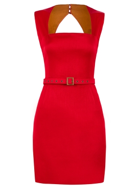 Rochie birou scurta din lana rosie cu decolteu patrat si curea asortata Cava