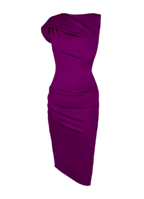 Rochie bodycon asimetrica mov fuchsia drapata din vascoza Dallas