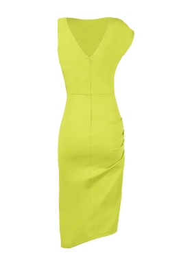 Rochie bodycon asimetrica verde lime drapata din vascoza Dallas