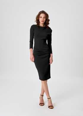Rochie bodycon midi neagra drapata din vascoza Luster
