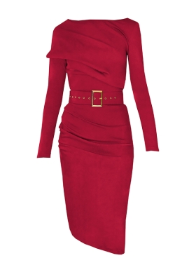 Rochie bodycon rosie din vascoza cu drapaje si curea asortata Slide