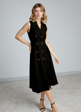 Rochie camasa fara maneci neagra cu nasturi si cordon in talie Berlin