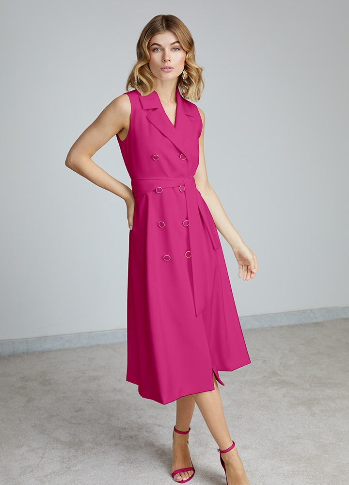 Rochie camasa fara maneci roz cu nasturi si cordon in talie Berlin