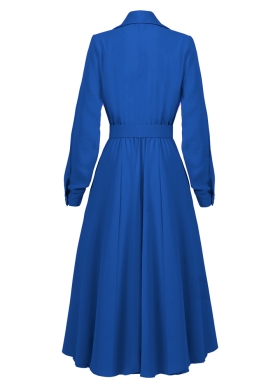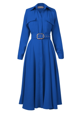 Rochie camasa midi albastra cu fusta ampla si curea asortata Patty