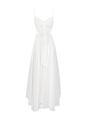 Rochie cocktail midi alba din matase naturala decupata cu nasturi si corset ajustabil Pina