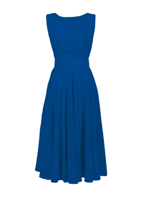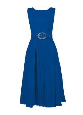 Rochie cocktail midi albastra cu buzunare si curea asortata Vienna