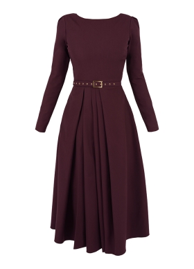 Rochie cocktail midi cu fusta cu pliuri si curea asortata Haga