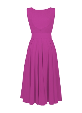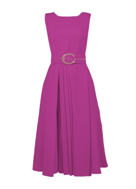 Rochie cocktail midi magenta cu buzunare si curea asortata Vienna