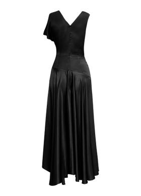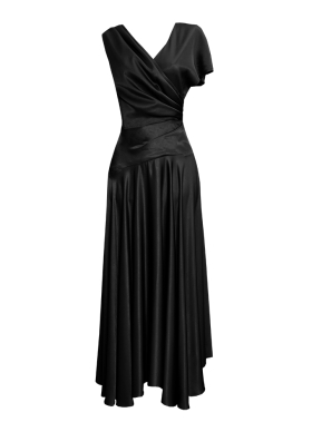 Rochie cocktail midi neagra din vascoza cu maneci scurte si decolteu in V Siena