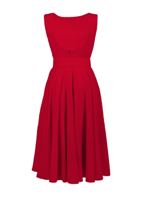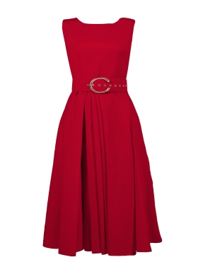 Rochie cocktail midi rosu inchis cu buzunare si curea asortata Vienna