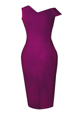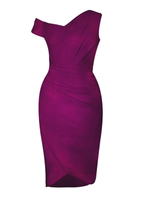 Rochie cocktail scurta mov cu drapaje si decolteu asimetric Bellini