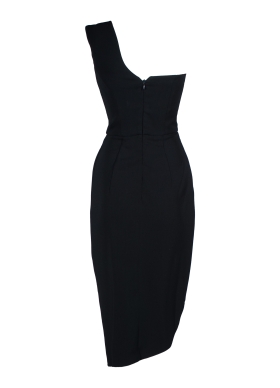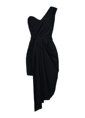 Rochie cocktail scurta neagra cu drapaje asimetrice Rave