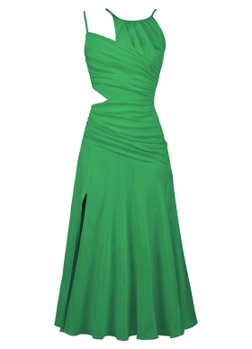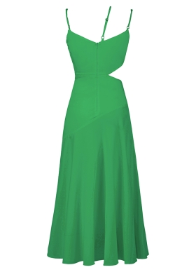 Rochie cocktail verde de eveniment midi cu drapaje si decupaje Arpeggio