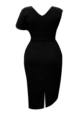Rochie conica asimetrica neagra cu drapaje si decolteu in V Chance