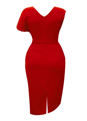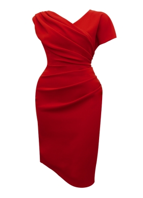 Rochie conica asimetrica rosie cu drapaje si decolteu in V Chance