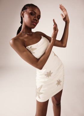 Rochie de cununie scurta alba din matase cu drapaje si broderii Insomnia