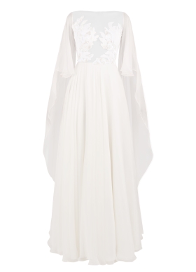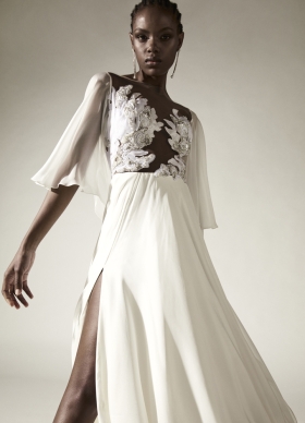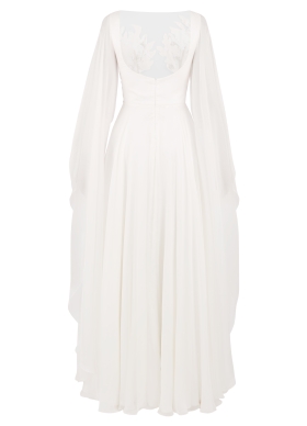 Rochie de mireasa din matase naturala cu maneci capa si broderii pe bust Utopia