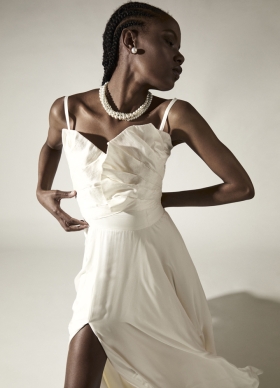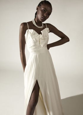 Rochie de mireasa din matase shantung cu drapaje si corset ajustabil Suave