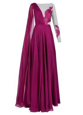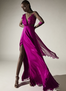 Rochie de seara din matase mov cu broderie si drapaje Soprano