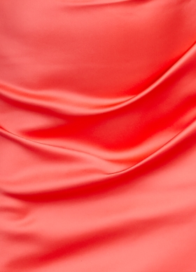 Rochie de seara lunga roz corai cu decolteu asimetric si fusta luna Porto