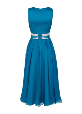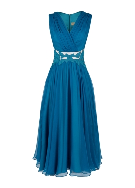 Rochie de seara midi albastra din voal de matase cu decolteu in V Tropic