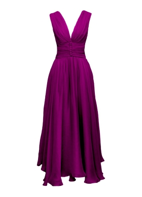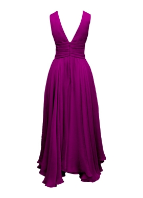 Rochie de seara midi mov cu decolteu in V din voal de matase naturala Elysee