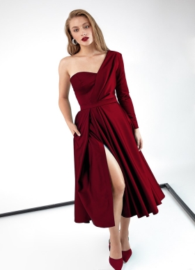 Rochie de seara midi visinie cu drapaje si o maneca lunga Marquise