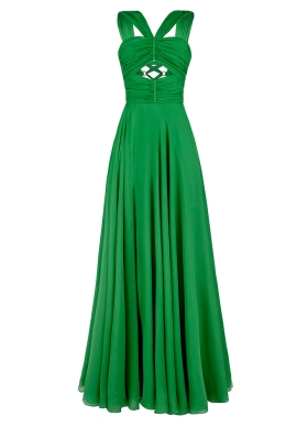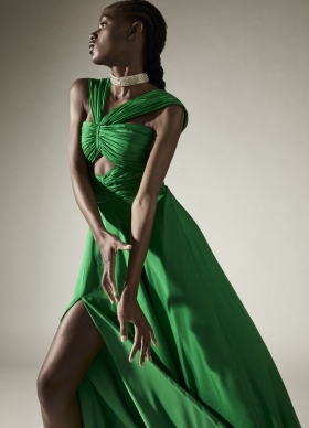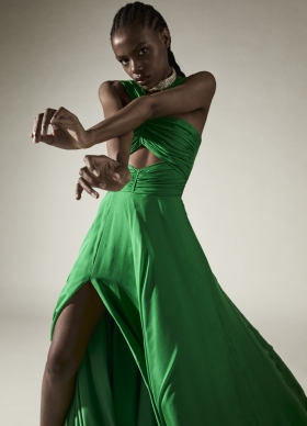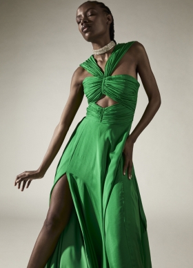 Rochie de seara verde din matase cu drapaje si decupaje Sonore
