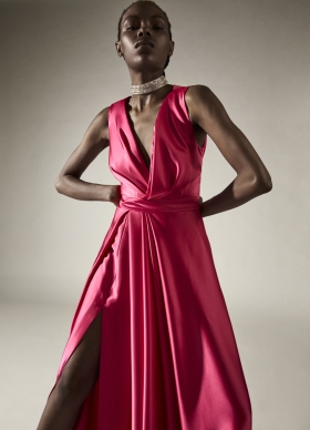 Rochie lunga de seara cu decolteu in V si spate ajustabil Concerto