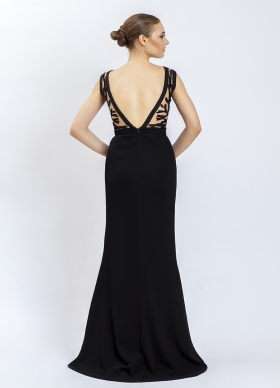 Rochie lunga de seara neagra cu fusta cu slit si decolteu cu broderii Storm