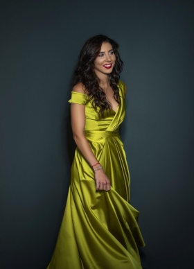 Rochie lunga de seara olive cu drapaje si decolteu asimetric Delirium