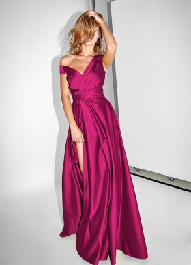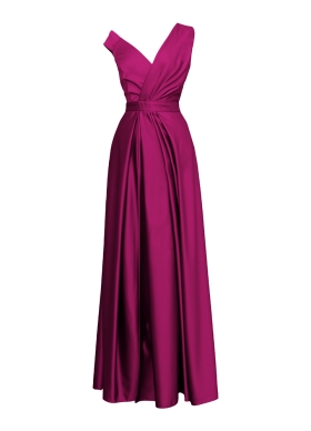 Rochie lunga de seara roz cu drapaje si decolteu asimetric Delirium