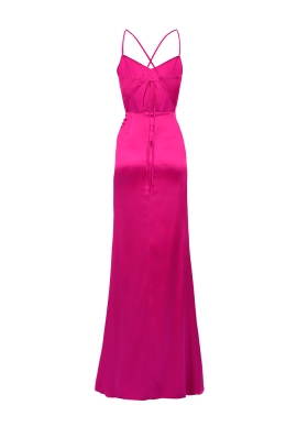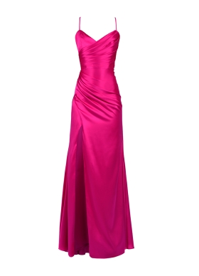Rochie lunga de seara roz din matase cu drapaje si slit pe picior Quartz