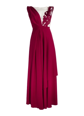Rochie lunga de seara visinie cu decolteu asimetric si broderie Orchid