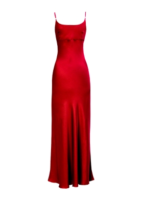 Rochie maxi rosie furou din satin cu decolteu rotund Veneto