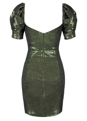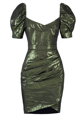 Rochie metalica scurta de petrecere cu croiala conica si maneci supradimensionate Luggo