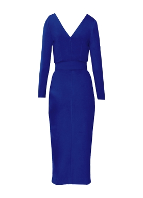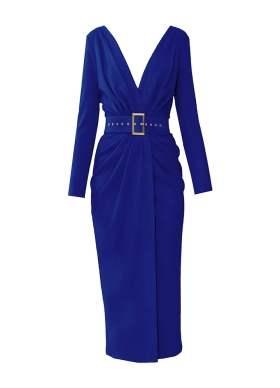 Rochie midi albastru electric drapata din vascoza cu curea asortata Sting