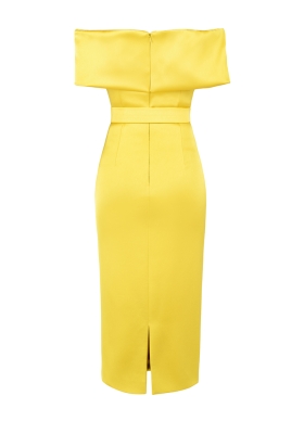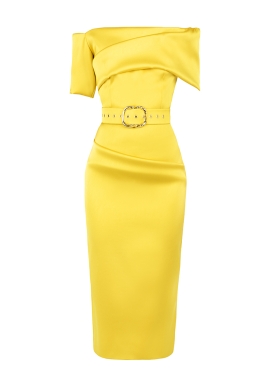 Rochie midi conica galbena cu drapaj si curea asortata Ankara